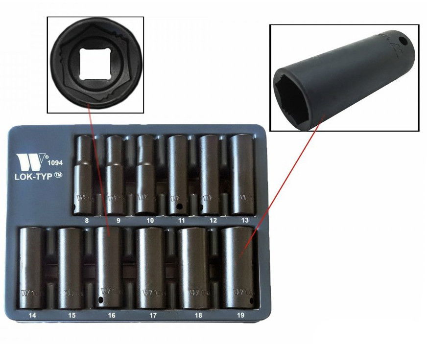 Welzh Werkzeug 1094-WW 3/8"-os 6-lapú Lok-Typ gépi dugókulcs fej készlet, hosszított, 12 részes