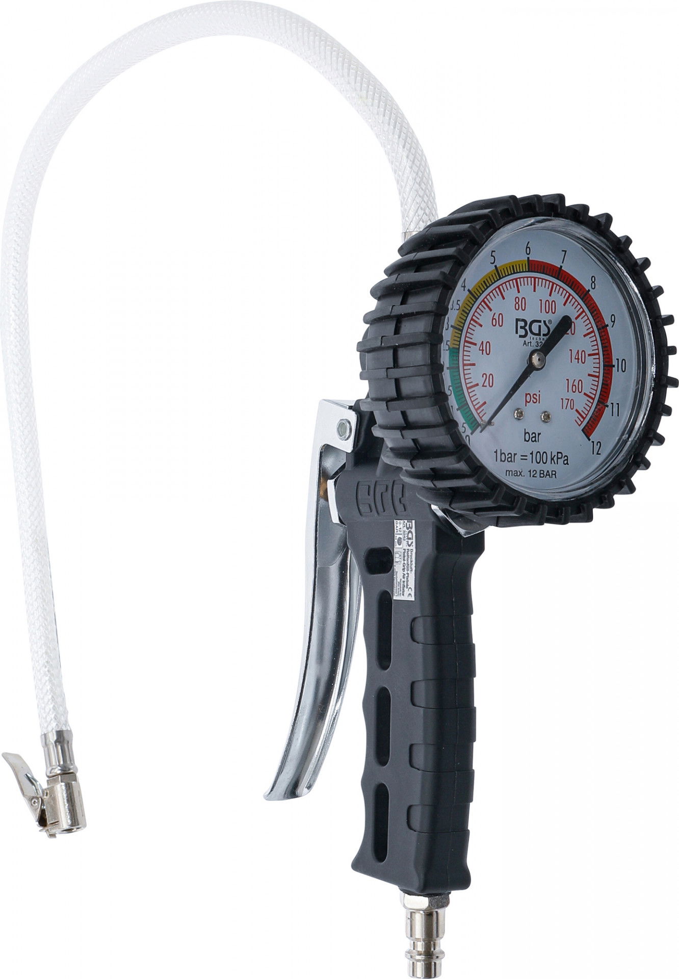 BGS Technic 9-3242 gumiabroncs nyomásmérő, kerékfúvató, 0-12 bar