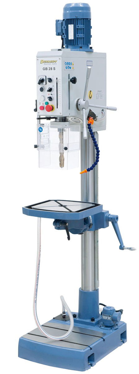 A GB 28 S erős teljesítményű hajtóműves oszlopfúrógép kitűnik a robusztus és vibrációmentes felépítési módja által. Ennek a modellnek az alkalmazási területei a szerelőüzemek, mechanikai műhelyek, de a képzési terület is.