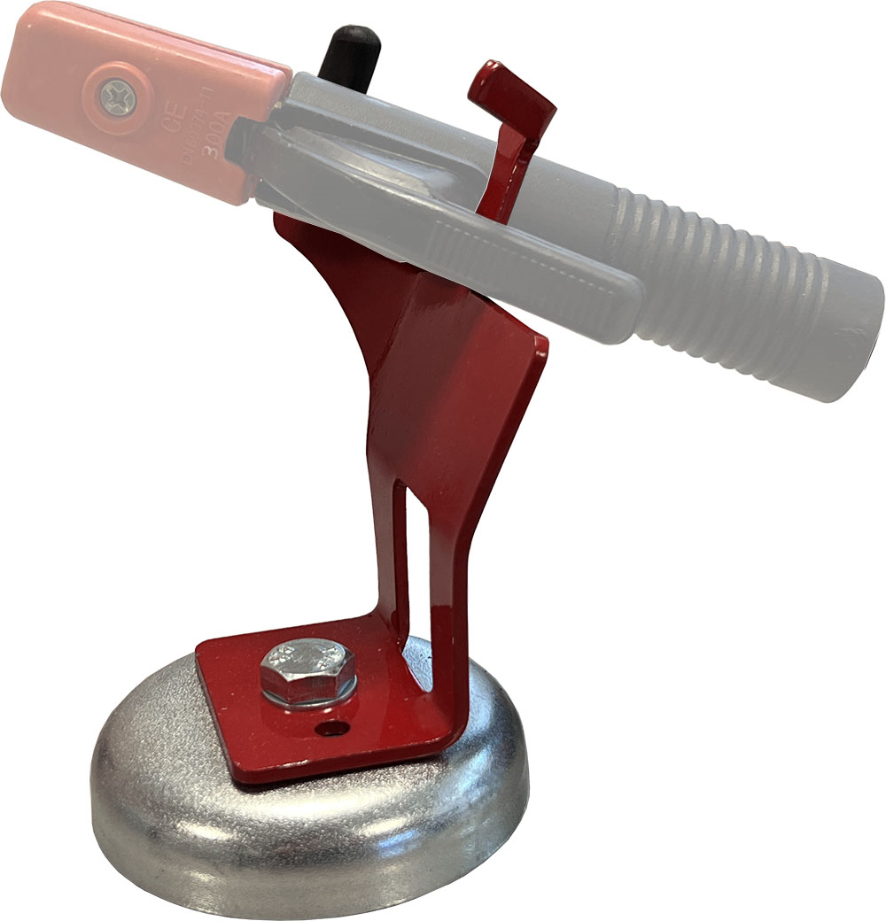A mágneses talpnak köszönhetően biztonságosan helyezhető le az elektródafogó egy munkafolyamat közben.